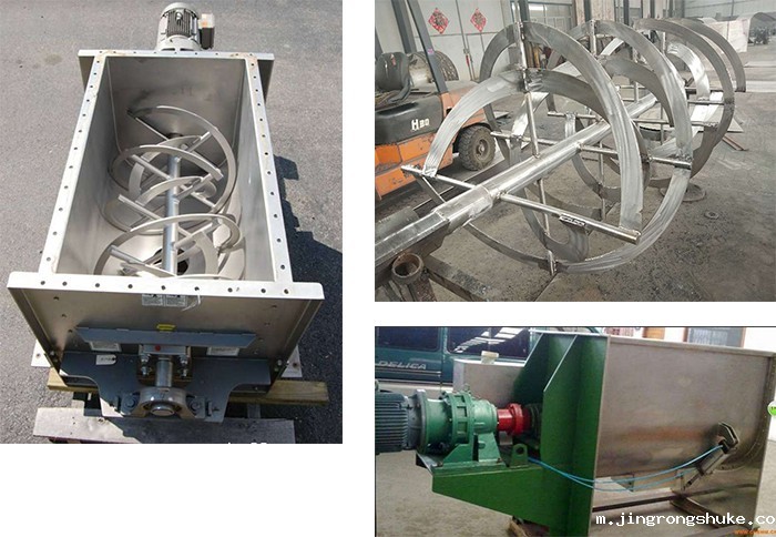 卧式混料机由U形容器、螺带搅拌叶片和传动部件组成;螺带状叶片一般做成双层或三层,外层螺旋将物料从两侧向中间汇集,内层螺旋将物料从中间向两侧输送,形成对流混合。 螺带混合机对于粘性或有凝聚性的粉粒体的混合以及粉粒体中添加液体及糊状物料的混合有良好的效果,筒盖可做成全开式门,以便于对设备进行清洗更换产品。